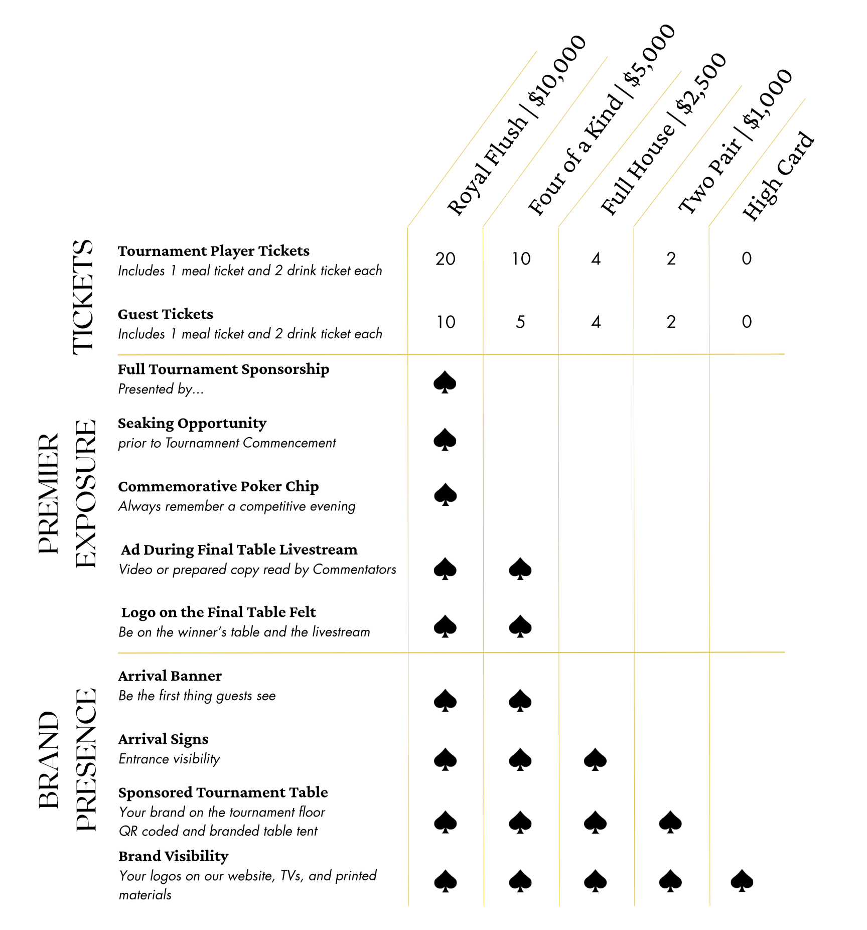 From our Title Sponsor Royal Flush all the way to the High Card, each tier plays a winning role in supporting the Assist the Officer Foundation.